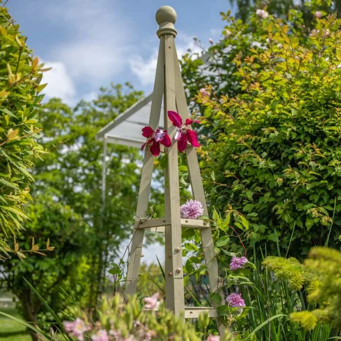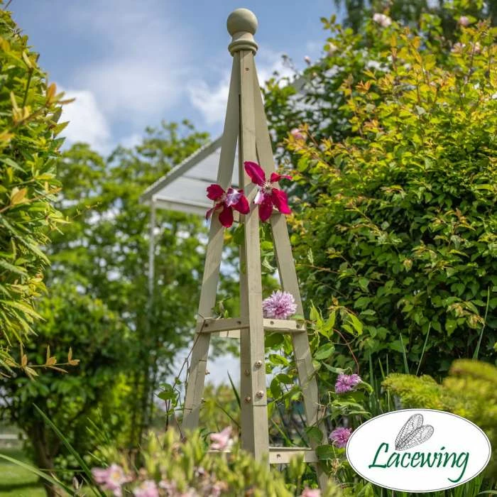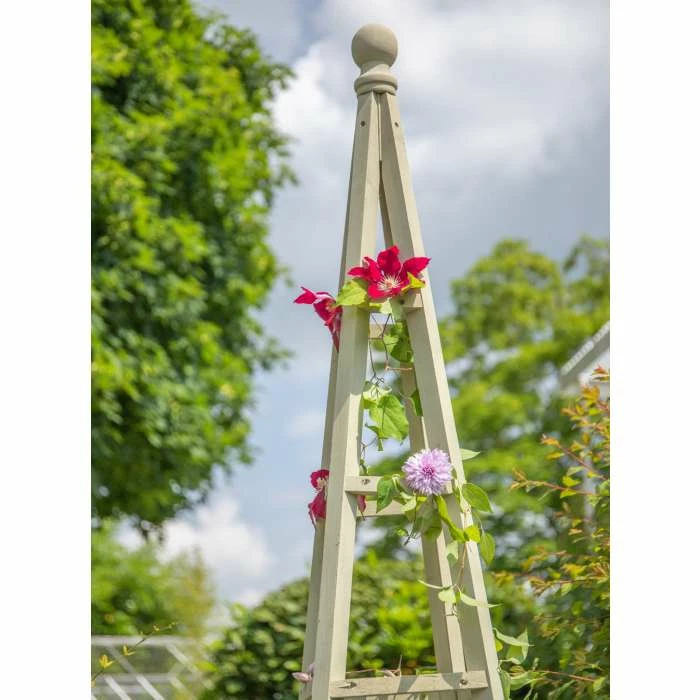 Add height and interest to your beds and borders with this classic wooden obelisk. Constructed from chinese fir wood, this obelisk is great for supporting climbing plants and flowers like clematis or wisteria for a rustic, natural look. Obelisks are a great way to disguise unsightly features or for creating screens in your garden, especially when used to support fast-growing climbers. These versatile garden structures can even be used to support certain fruits and vegetables such as tomatoes, beans or cucumbers.