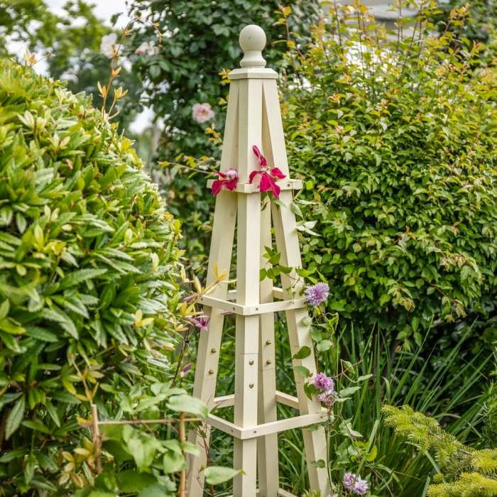 Add height and interest to your beds and borders with this classic wooden obelisk. Constructed from chinese fir wood, this obelisk is great for supporting climbing plants and flowers like clematis or wisteria for a rustic, natural look. Obelisks are a great way to disguise unsightly features or for creating screens in your garden, especially when used to support fast-growing climbers. These versatile garden structures can even be used to support certain fruits and vegetables such as tomatoes, beans or cucumbers.