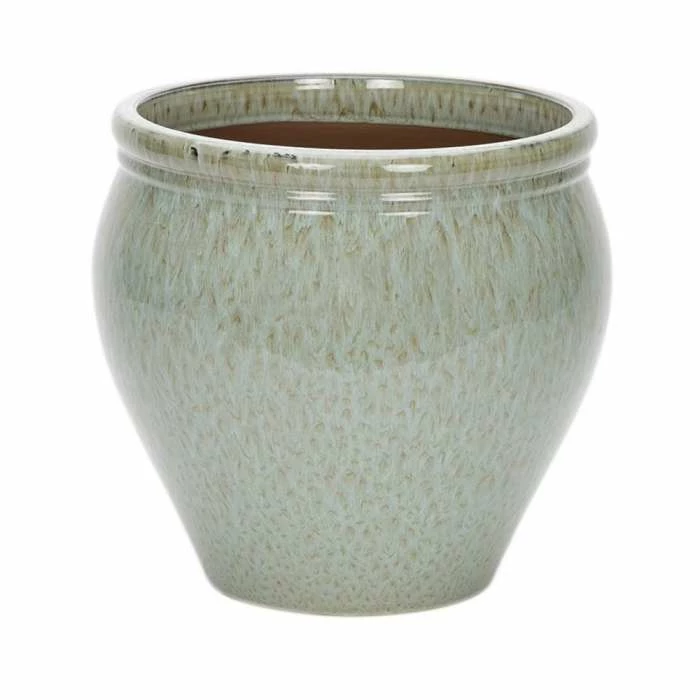 Striking green glazed ceramic planter with a unique flowing colour finish and deep lustre. A striking alternative to traditional glazed pots, ideal for drawing attention to feature displays.