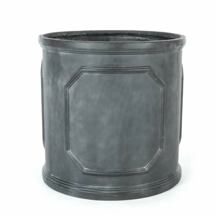 Stately and sophisticated faux lead cylinder planter in a classic grey colourway. Ideal for statement plants beside doors and entranceways, or adding timeless style to the patio.