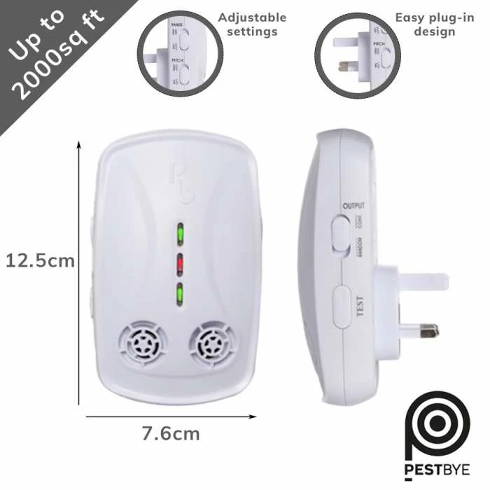 PestBye Whole House Rat and Mice Repeller combines both ultrasonic and electromagnetic technology to deter rodents from your property in a safe and humane way. Ultrasound is a loud noise at a high frequency: it’s too high for humans and most domestic pets to hear but is audible to most rodents. Please note the device may affect rodent pets such as gerbils, hamsters or chinchillas. It has been suggested that electromagnetic fields create an environment where rodents are less likely to nest. Rodents are likely to move away from a house where they cannot nest.