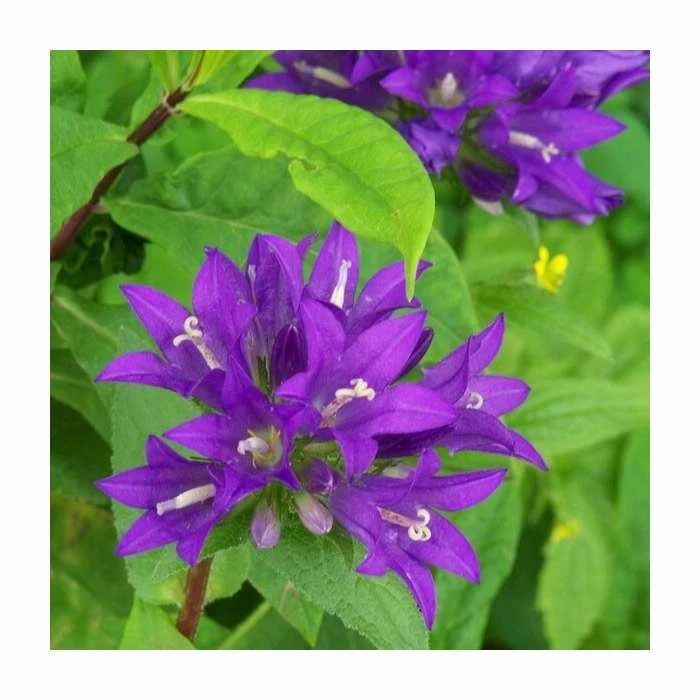 A herbaceous perennial with bell-shaped purple-flowers. Position: full sun or partial shade Soil: fertile, moist, well-drained, neutral to alkaline soil Rate of growth: fast-growing Flowering period: June to August Hardiness: fully hardy Dense heads of large, rich purple, bell-shaped flowers appear from June to August on tall stems that rise above rosettes of oval, mid-green leaves. This beautiful bellflower is perfect for a sunny cottage-style or herbaceous border and is equally happy in partial shade. Garden care: Avoid planting out seedlings until all threat of frost has passed. During the growing season water freely and apply a balanced liquid fertiliser each month. Cut back after flowering, both to prevent self-seeding and to encourage a second flush of flowers.