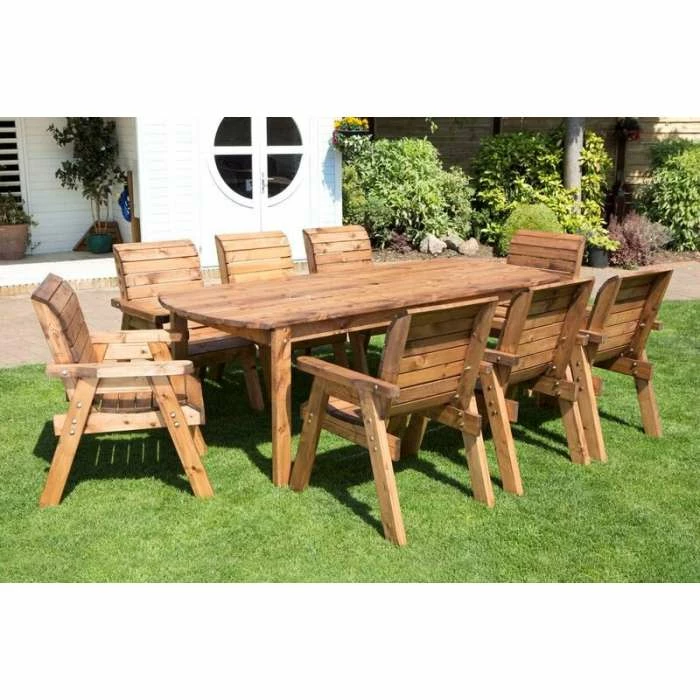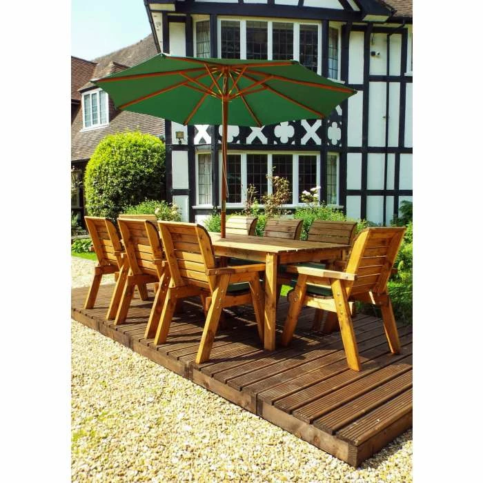Be the first to review “Charles Taylor Wooden Garden 8 Seater Rectangle Table Dining Set With Green Cushions And Parasol” Cancel reply