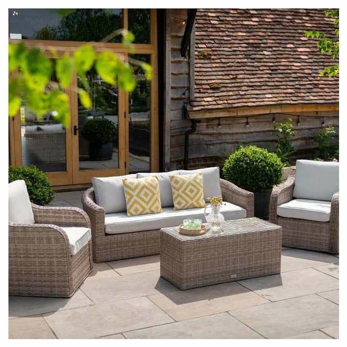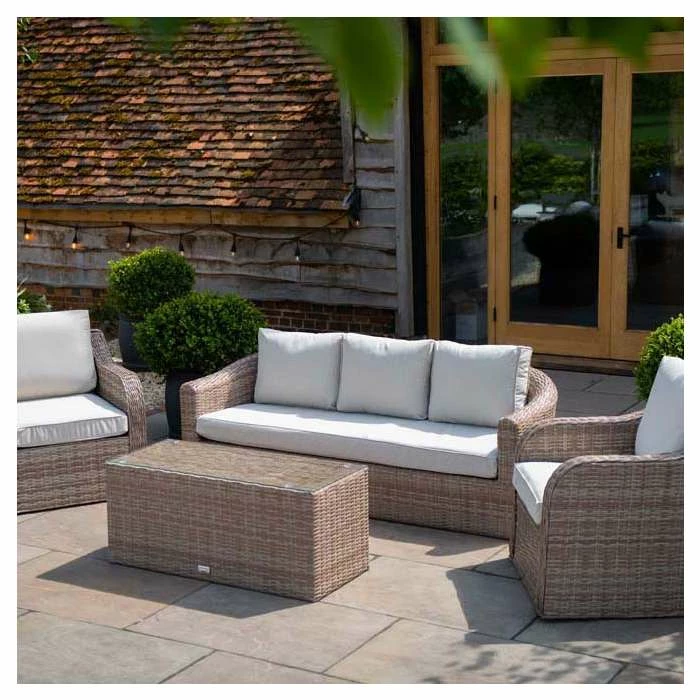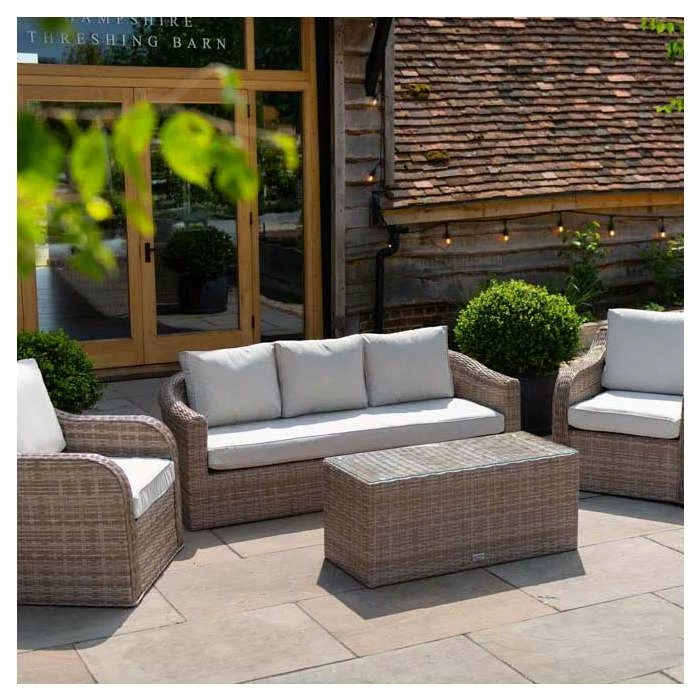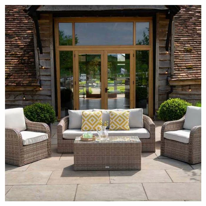 Dine, relax and entertain in style. Designed for modern outdoor living, this versatile set has deep, high-backed seating lined with thick, foam-filled cushions for unrivalled comfort and support.