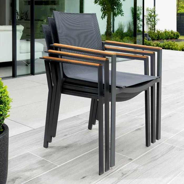 The Concept Dining Table with our Spraystone Top is strong and durable, using crushed stone sprayed on a glass plate, it gives a natural and luxurious look. The Sense Dining Chairs are filled with Life’s porous inner lining allowing rainwater to penetrate through and dry off, practicality and comfort. Sense Chairs are also stackable.