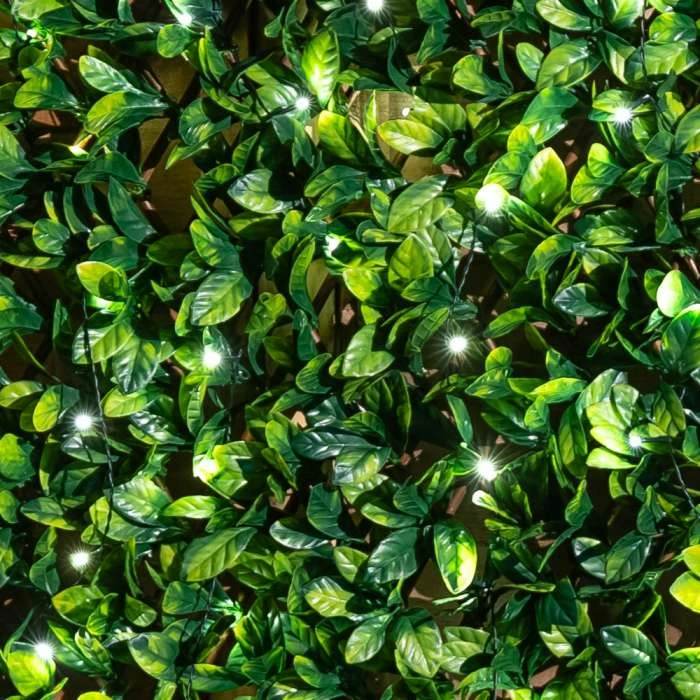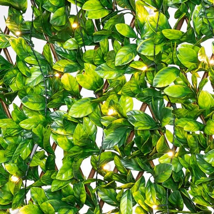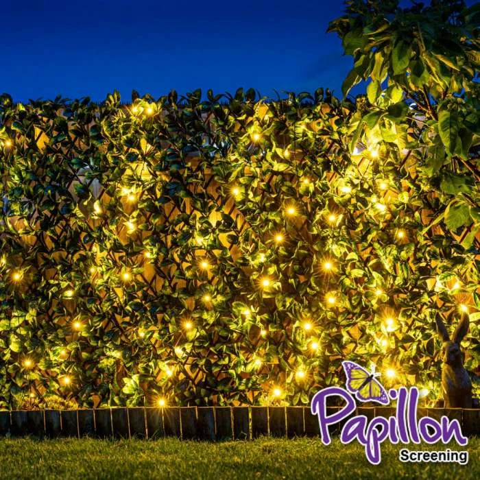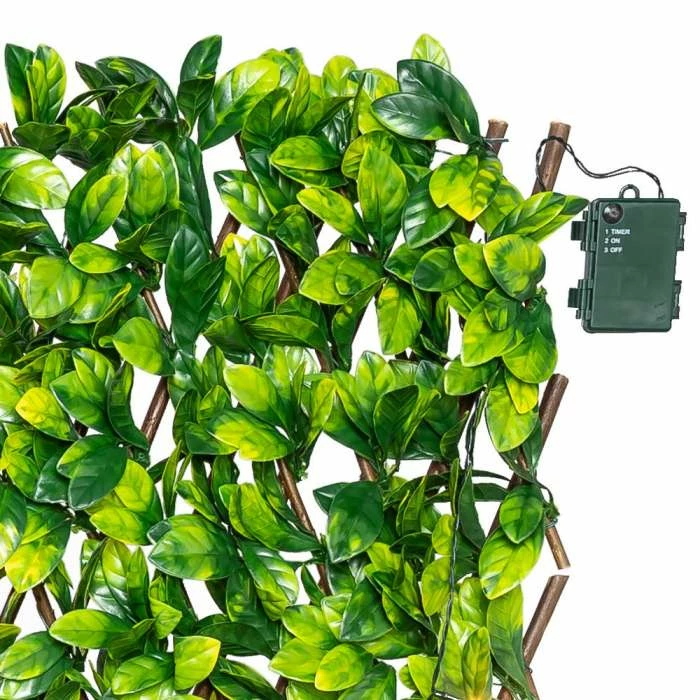 Add a little sparkle to your garden at night with this extendable artificial screening trellis with LED lights. This beautiful extendable screening trellis can cover walls, fences and hedges or to add some extra privacy from nosy neighbours. This screening not only looks stunningly realistic but provides you with a different but easy way to cover up old fences and walls, without having to wait for the plants to grow. The durable willow frame is easily extendable and does not retract from the aesthetics of the design. The battery powered LED lights can be easily switched on after the sun has set so you can continue to enjoy your garden all night long.