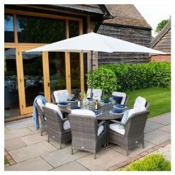 Classic Rattan 8 Seater Oval Garden Dining Set With Parasol In Stone By Primrose Living
