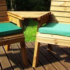 Charles Taylor Wooden Garden Twin Bench Angled Set With Green Cushions And Standard Covers