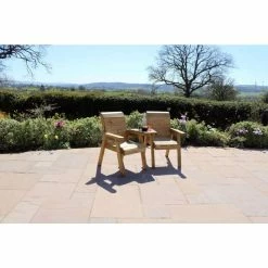 Charles Taylor Wooden Garden Twin Companion Set With Burgundy Cushions And Fitted Cover