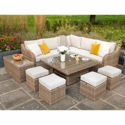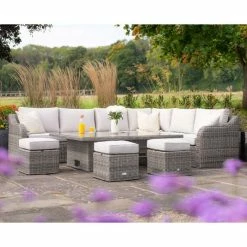 ‘Peony’ Luxury Rattan 10 Seater Modular Garden Sofa Set With Rectangular Table By Primrose Living