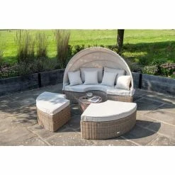 2x Luxury Rattan Daybed Curved Stools In Natural By Primrose Living