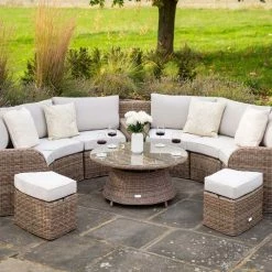 ‘Peony’ Luxury Rattan 7 Seater Modular Garden Sofa Set With Square Rising Table By Primrose Living