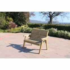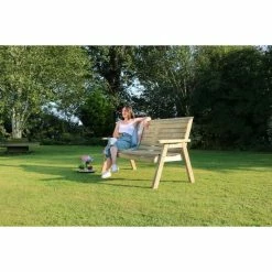 Wentworth Wooden Three Seater Arbour With Cushions And Canvas Canopy – 2.3m, Green