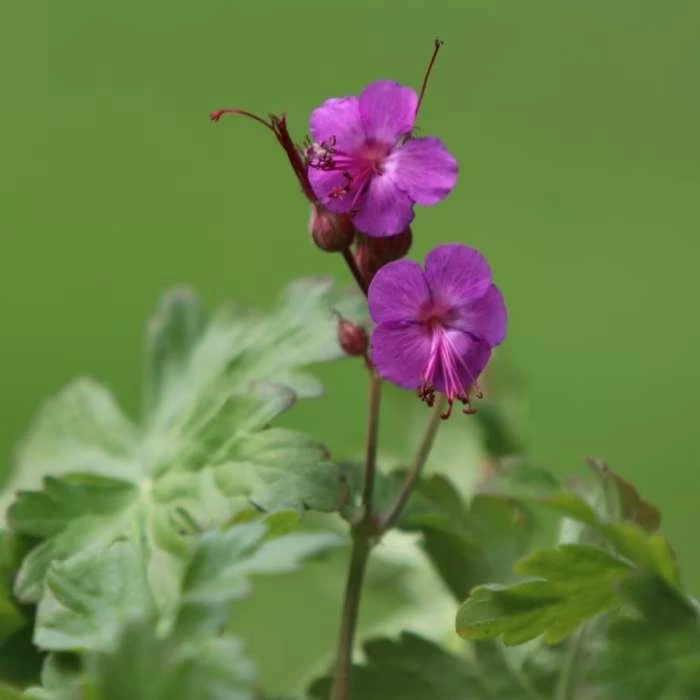 Magenta flowers. Perfect for suppressing weeds. Position: full sun or full shade Soil: fertile, well-drained soil Rate of growth: fast growing Flowering period: May to September Hardiness: fully hardy Clusters of small, saucer shaped, crimson-purple flowers are held on slender stems above strong aromatic, light green leaves from May to September. This is one of the most versatile and useful geraniums, as it will even thrive in dry shade. The deeply cut, semi-evergreen foliage also spreads quickly to form low hummocks that suppress weeds for most of the year. It looks lovely with strongly shaped perennials, such as bergenia, or polemonium, or planted en masse under trees, and is also valuable for hiding the foliage of spring bulbs as they die down. The leaves often turn red in autumn, too. Garden care: Carefully weed by hand – hoeing can break rhizomes as these are very close to the surface. Lift and divide large colonies in spring.