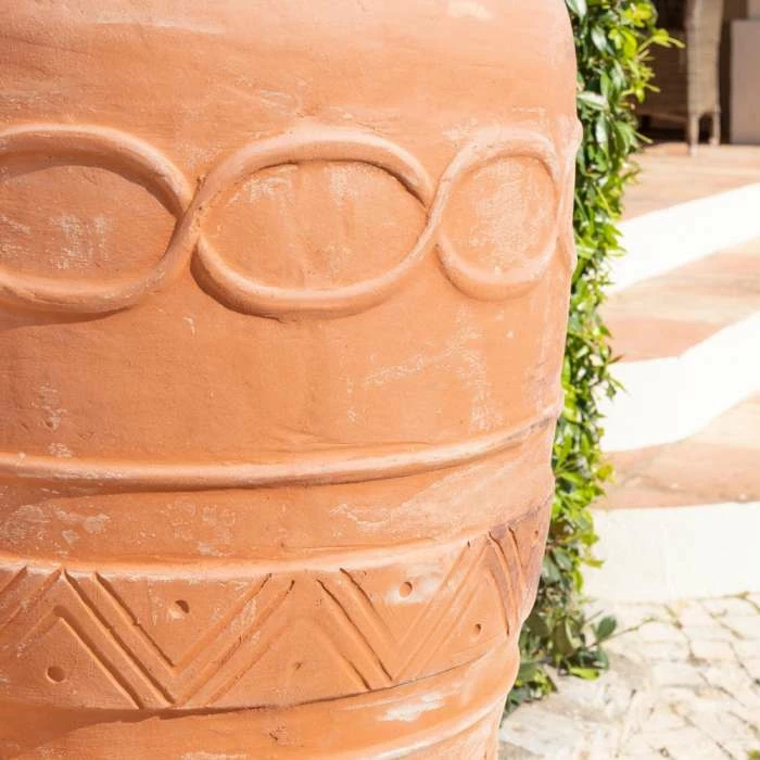 This tall terracotta vase planter is a gorgeous addition to any garden or patio. The traditional earthy colour and intricate detailing makes it perfect for complementing plants, flowers and topiary. A timeless looking material for pots and planters, terracotta has been a popular garden staple for hundreds (if not thousands) of years. This sturdy material is great for resisting bad weather and is also slightly porous, resulting in healthier roots and plants.