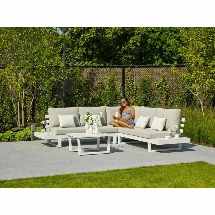 The open-bar and minimal look of the Ibiza Corner Set will assure your garden or balcony will still feel spacious. The range comes in the ever-popular lava frame, complimented by our Mouse Grey soft touch All Weather cushions.