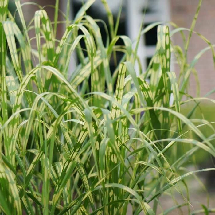 An unusual yellow and green variegated perennial grass. Position: full sun or partial shade Soil: fertile, humus-rich, well-drained soil Rate of growth: average Hardiness: fully hardy In late summer, silvery pink feathery plumes emerge from the tall, arching yellow and green variegated blades. A striking and unusual miscanthus with irregularly marked linear leaves, ‘Lottum’ has markings that give the appearance of alligator skin. Pick a sunny or slightly shady spot for this giant miscanthus for a great seasonal show! Garden care: Comb through the plant in winter to remove dead foliage. Feed with a general purpose fertiliser during the growing season and if necessary, lift and divide over-large clumps in early spring.