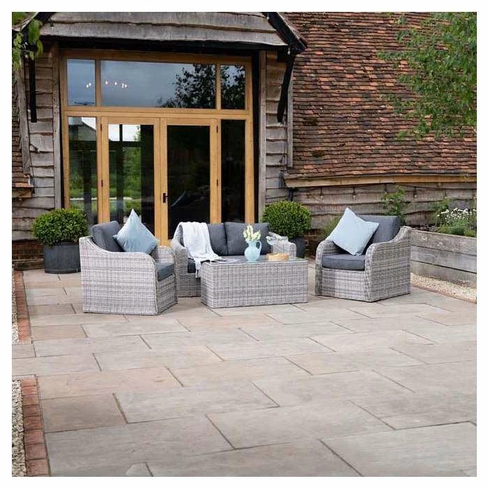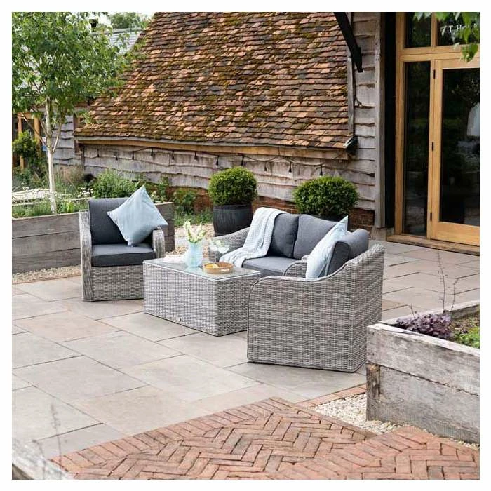 Dine, relax and entertain in style. Designed for modern outdoor living, this versatile set has deep, high-backed seating lined with thick, foam-filled cushions for unrivalled comfort and support.