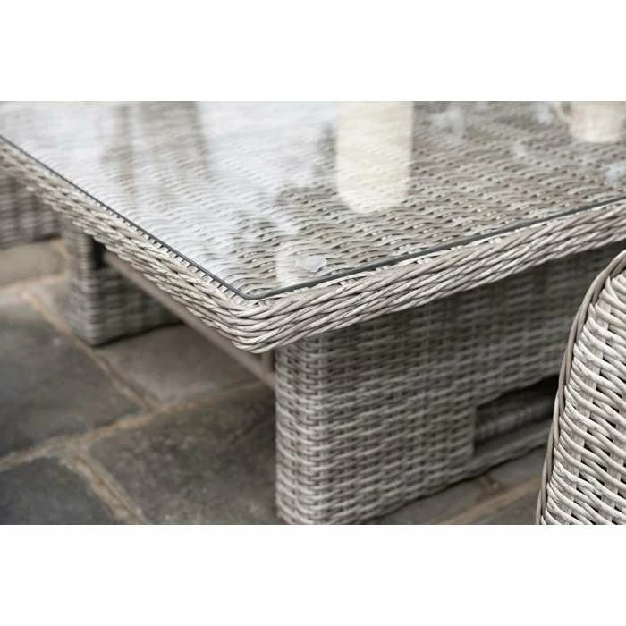 Dine and entertain in comfort and style. Designed for modern outdoor living, this set can be arranged any way you want, and it’s built to last using a premium double-woven half weave rattan around a powder-coated aluminium frame.