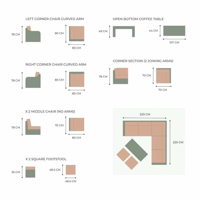 - 1 x Left Corner Chair