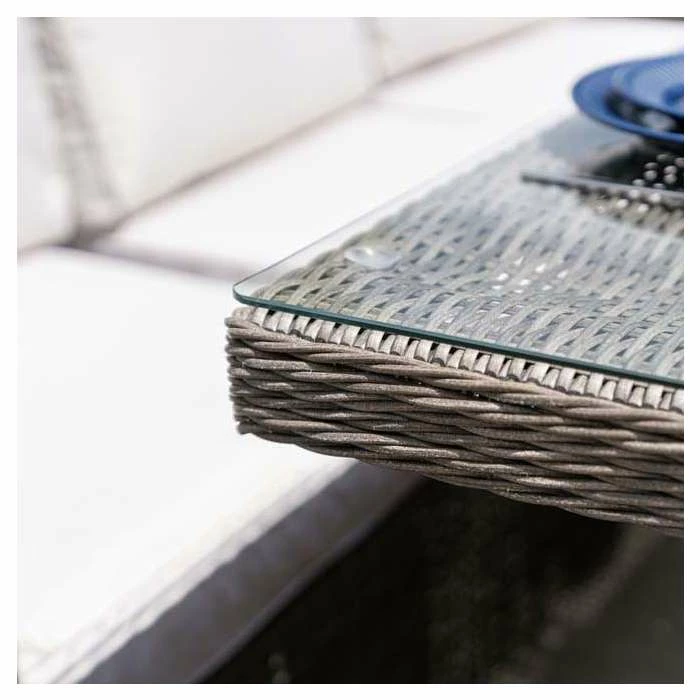 Dine and entertain in comfort and style with Primrose Living. Designed with modern outdoor living in mind, this set can be arranged any way you want and comes with a lot of versatile extras. The deep, high-backed seating is lined with thick, foam-filled cushions for unparalleled comfort and support.