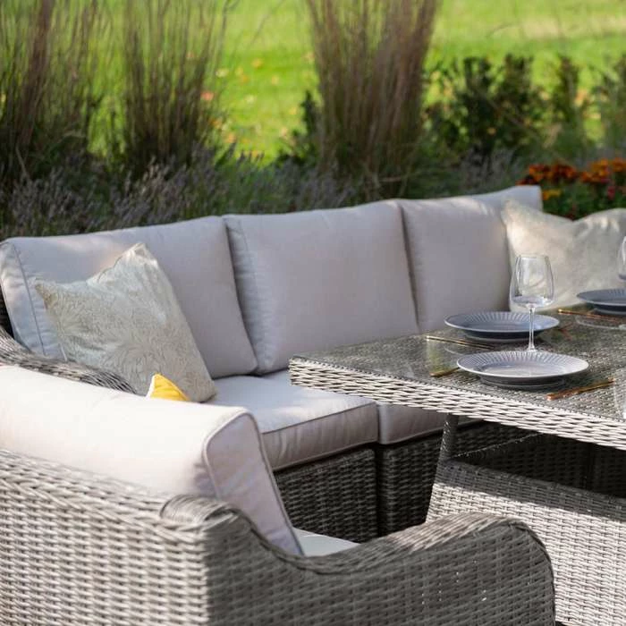The deep seated, high-backed seating is lined with thick, foam-filled cushions that give unparalleled comfort and support. As every piece is built to last using a premium double-woven half weave rattan (a rare find) around a powder-coated aluminium frame, this is a set you’ll enjoy for years to come.