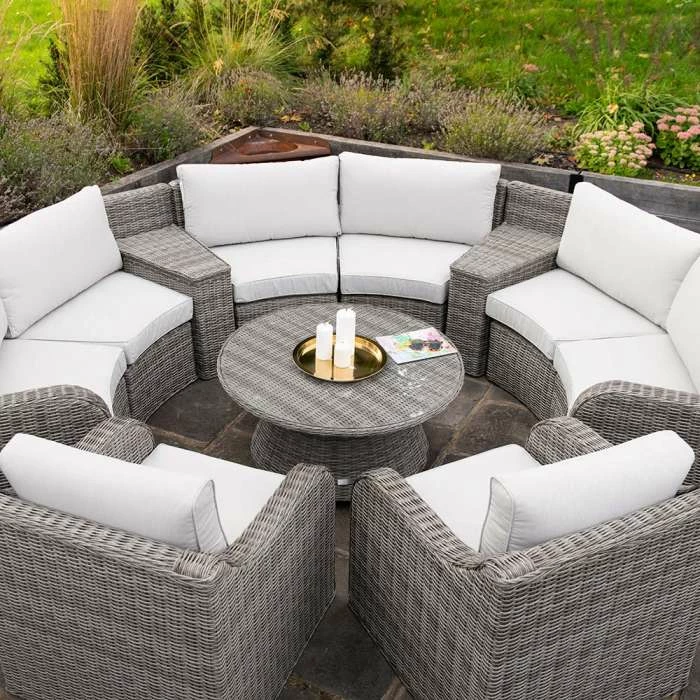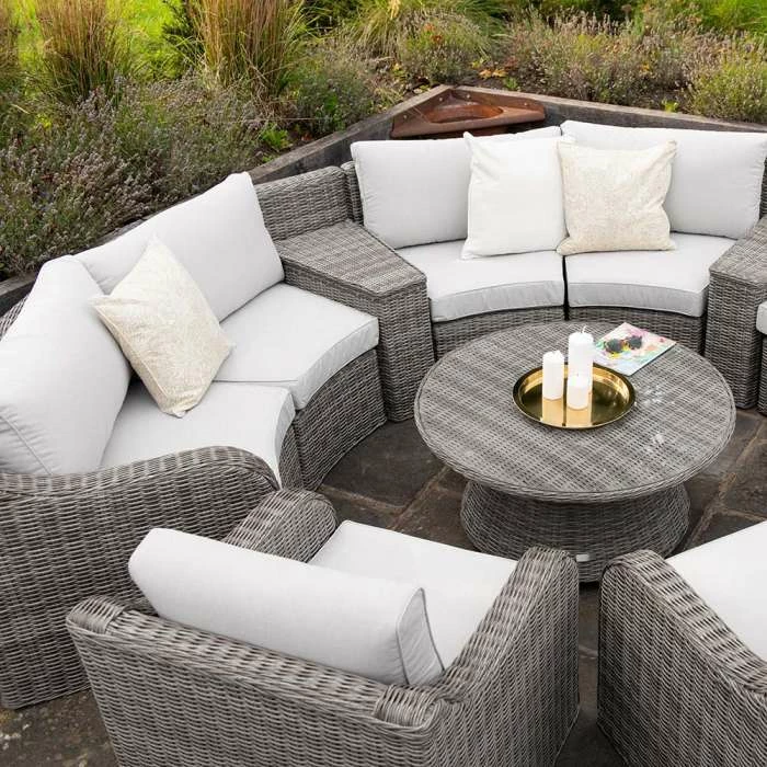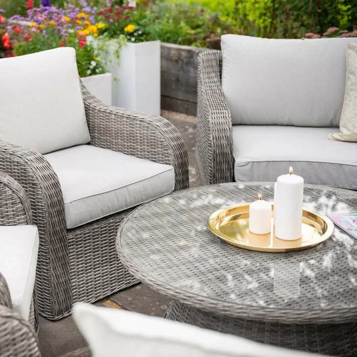 The set is completed with a round coffee table, a great and versatile seating area for any garden, and its double-woven half weave rattan – wrapped around a powder-coated aluminium frame – means you can be sure it’ll stay stylish no matter what life throws at it.