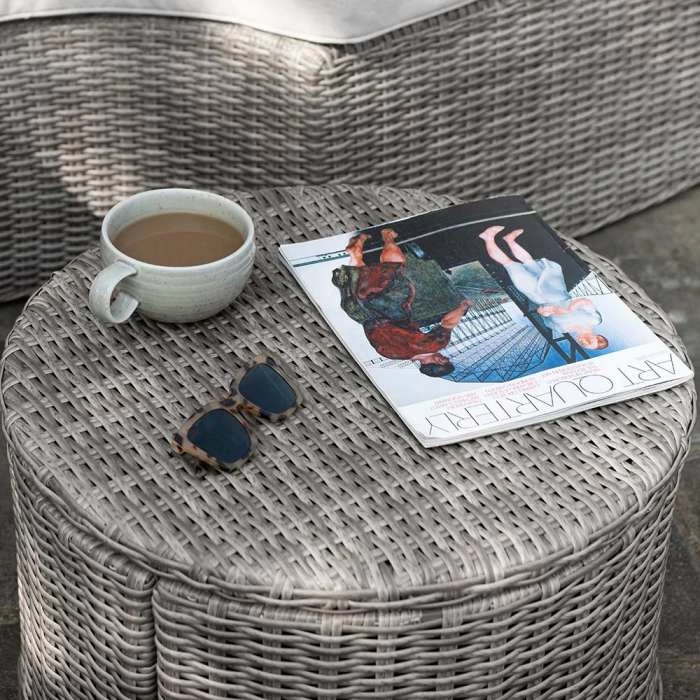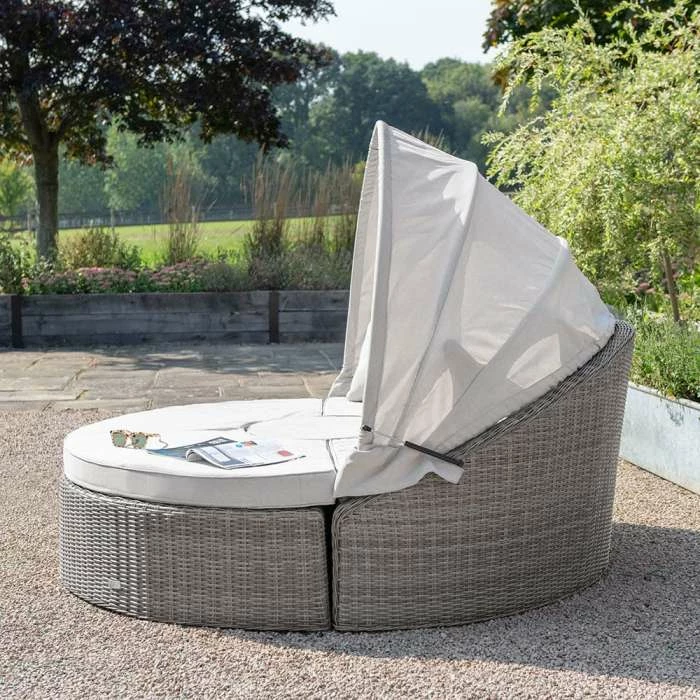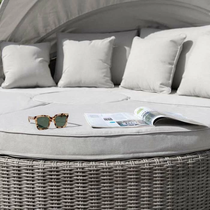 In either layout, the thick, foam-filled cushions give you unrivalled comfort and support. Remove the cushion of the round footstool to turn it into a handy table. The main sofa section comes with a retractable canopy that offers protection in all weathers – giving you the ability to enjoy a multi-use outdoor space year-round.