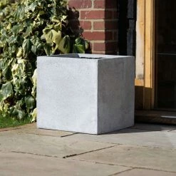 Cube 40cm Handmade Fiberstone Planter In Grey – Exclusive To Primrose