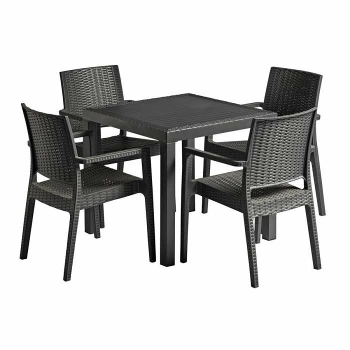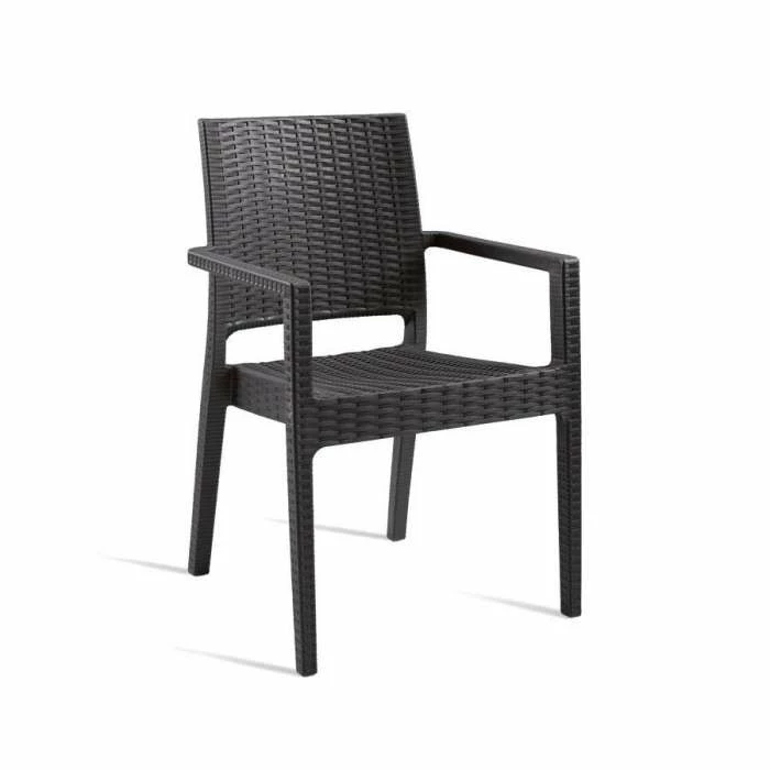 Comfortable, stylish Malaga dining set with stackable armchair and made of durable weather-resistant resin reinforced with glass fiber. Non-metallic frame will never unravel, rust or decay.
