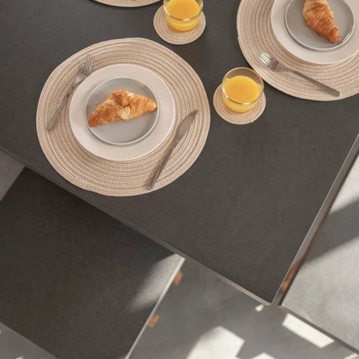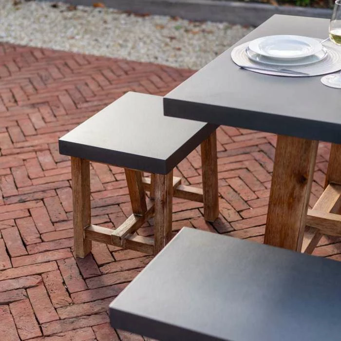 This Rustic dining set from Primrose Living brings a farmhouse chic to your kitchen or garden decor, without any compromises on quality. The acacia wood forming the heart of the table and benches has been selected to fit right into your style, while the cement fibre tabletop is designed to be durable yet manageable.
