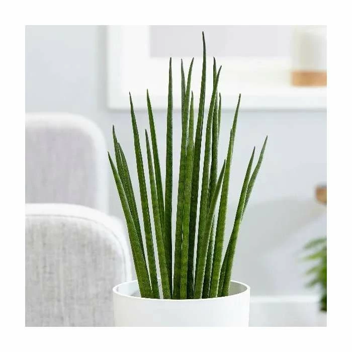 A tough, minimalistic houseplant. Position: ideally bright, with some full sun, but will also tolerate shade Soil: good potting compost Rate of growth: slow Hardiness: tender (indoors only) Current height: approximately 40cm (+ or – 10% including the pot) Pot cover: choose a 14cm pot cover to give a good fit over the pot From the family of mother-in-law’s tongue, this plant has similar characteristics – ie. tough, easy to grow, and extremely tolerant. The difference is that this form has slim, spear-like foliage that fits in well with contemporary decor. It’s one of those plants that doesn’t take up too much space, but it does have a big impact. The pot in the photograph is not supplied with the plant (which is sent out in a simple nursery pot), but they do make excellent potted plants. If you wish to pot yours up, we do have a wide range of pots on our website to choose from. Please note: it is quite common for these plants to have small nicks or scars on their leaves. This does not affect their long-term health or vigour in any way. Home care: The main thing to avoid with this plant is overwatering, so only water (avoiding the crown) when the compost gets quite dry. In winter you can cut back even more and only water every month or two and keep temperatures above 10°C. Repot every few years when the roots start to split the pot.