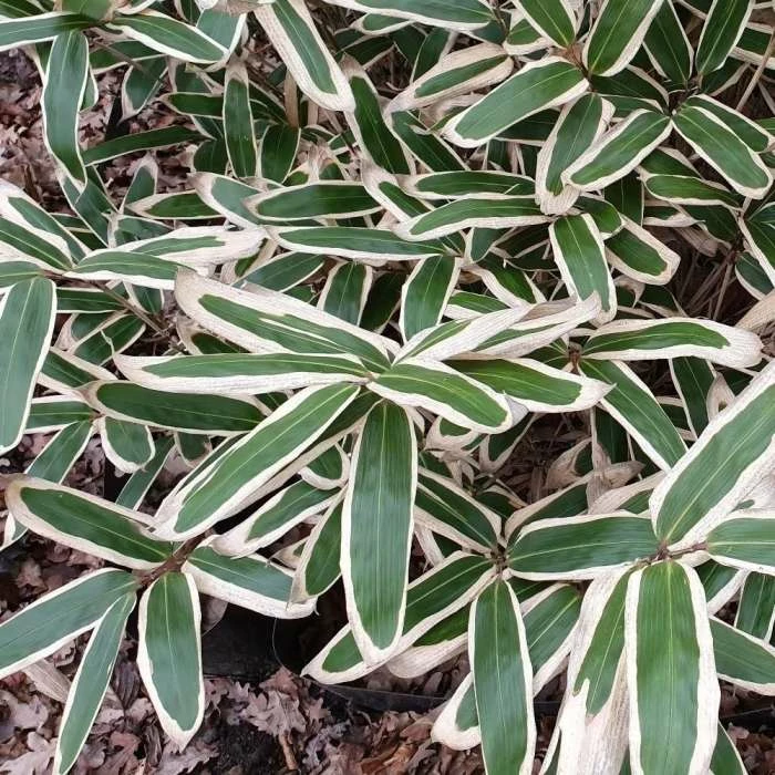 A low, dense-growing bamboo with slender, upright canes and papery green leaves. Position: full sun or partial shade Soil: humus-rich, moist, well-drained soil Rate of growth: fast-growing Hardiness: fully hardy This bamboo is unusual in that the leaves are a glossy green throughout the summer, but in the autumn they start to dry out at the margins to create a straw-coloured variegated appearance. Garden care: Plant in a large container or surround the roots with a non-perishable barrier that restricts the plant’s spread.