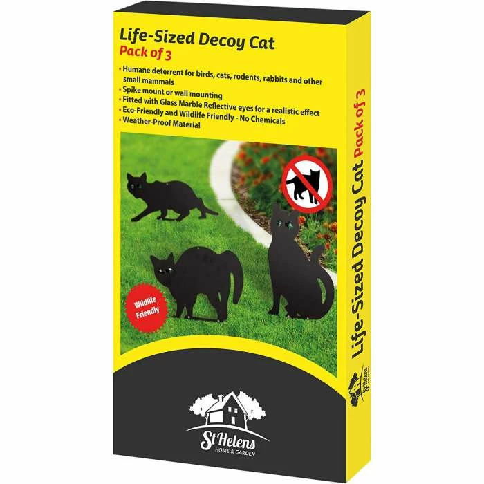 The cats’ reflective marble eyes give the silhouettes a realistic edge even at night, adding to the effectiveness of the deterrents.