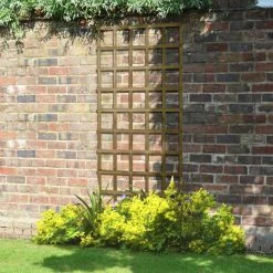 This traditional trellis features substantial 15mm thick x 30mm wide battens that are spaced to give plenty of room for climbing plants to weave between. When covered and in full bloom this trellis is perfect for brightening up a back wall or courtyard. The battens are pressure treated to protect them from rot and fine sawn with a rounded front profile for an attractive finish. All the timber is pressure treated to protect it from rot so the finished product will last many years. Comes with a 15 year Anti-Rot guarantee.
