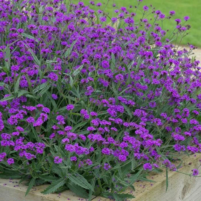 Iridescent magenta flower heads. Position: full sun Soil: moderately fertile, moist, well-drained soil Rate of growth: average to fast-growing Flowering period: June to September Hardiness: frost hardy (needs winter protection) A neat, low-growing verbena producing lax clusters of fragrant, bright purple or magenta flowers from June to September. This jewel-like perennial is perfect for a sheltered, sunny, well-drained spot. Associating well with grey and silver-leaved plants, it’s wonderful used in generous drifts for infilling a traditional knot garden. It will self-seed freely in the right spot and the flowers are a magnet to butterflies and bees. Garden care: In areas prone to frost apply a deep, dry winter mulch around the crown of the plant.