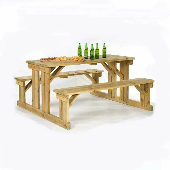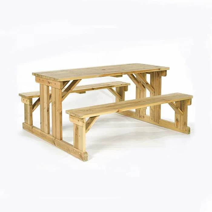Made from sustainable Pine and constructed using thicker timbers for strength. Dip treated at the point of manufacture to prevent rot and fungi growth. As the name suggests this walk-in style picnic table allows easier access at the sides than a traditional A frame picnic table.