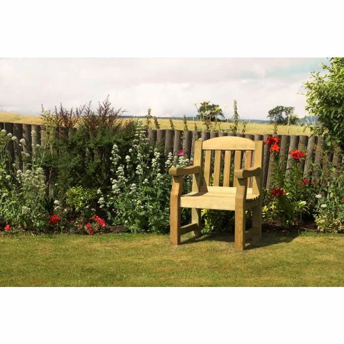 The Emily Chair, complete with armrests, is a sturdy and solid piece of furniture. Perfect for relaxing in the summer sun, the chair is a great feature on its own or paired with the Emily Table. Manufactured from pressure treated timber, you can guarantee that this stunning piece of furniture will last for many years. The chair is also guaranteed against rot for 10 years.